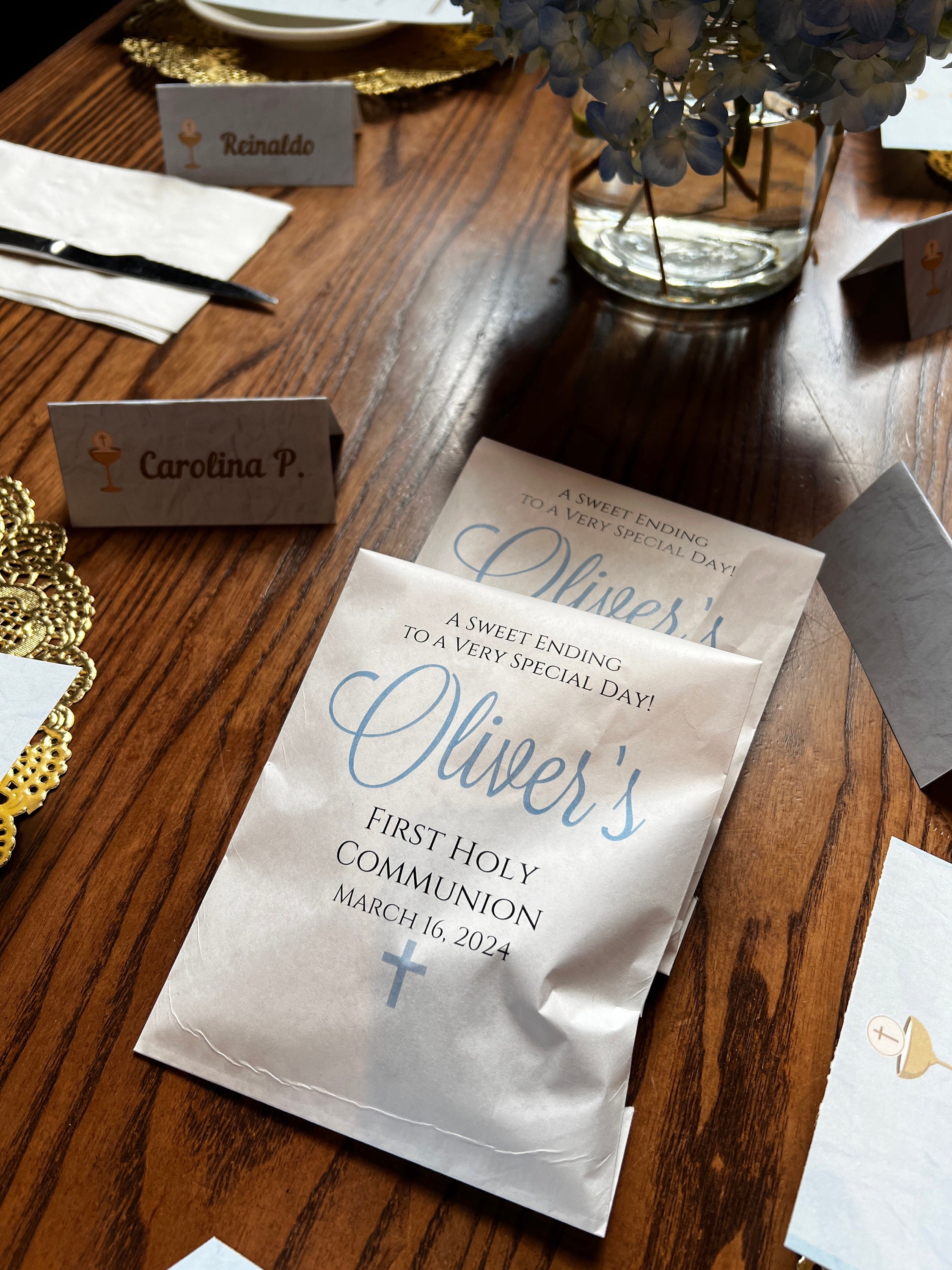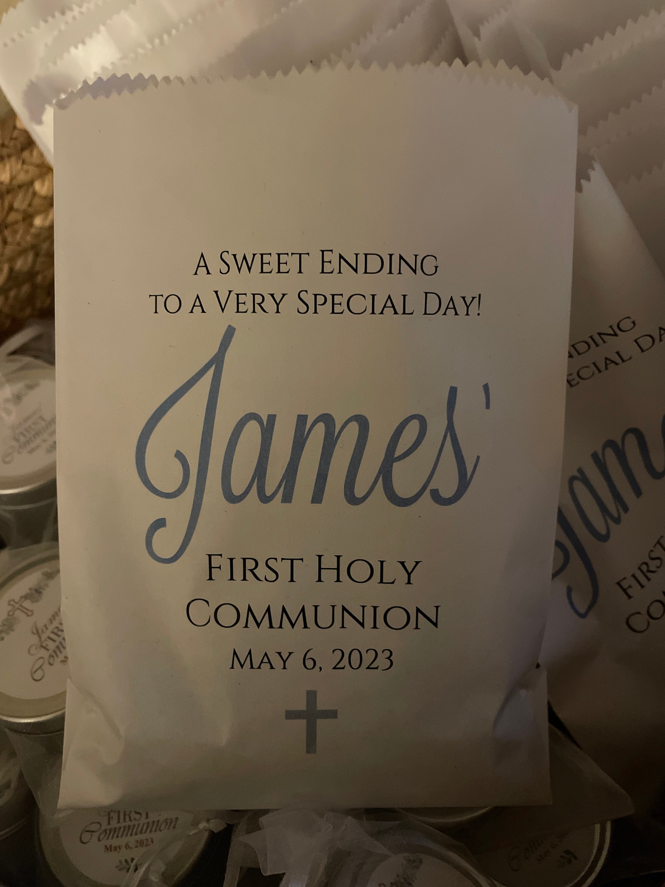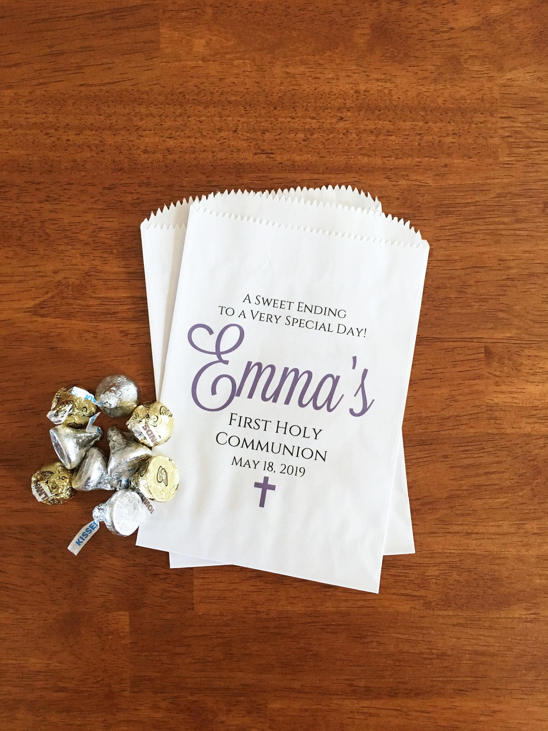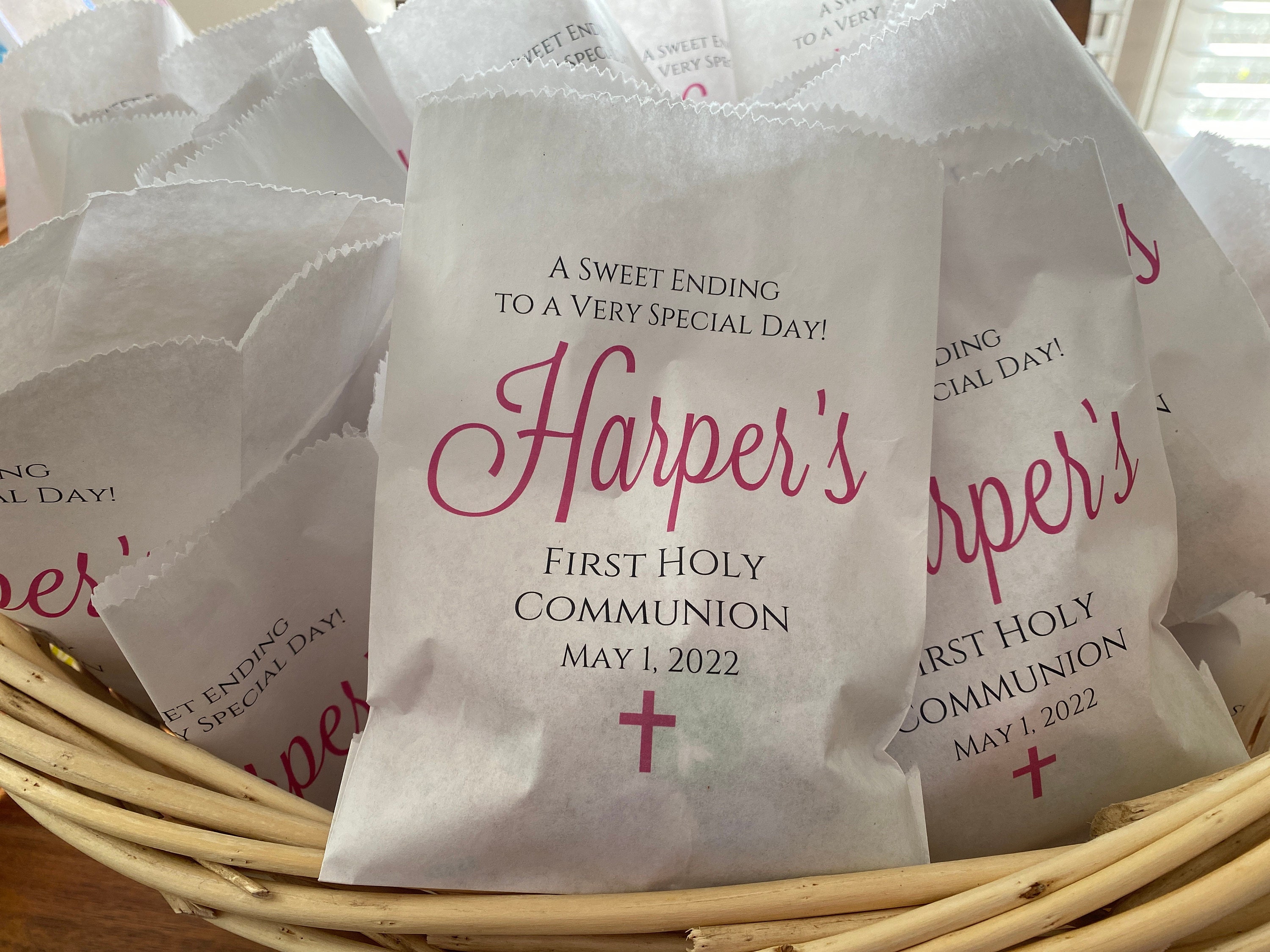 First Communion Favor Bags LINED - First Holy Communion, Baptism Treat Bags, Confirmation Party Favors - Candy Bags, Donut Bags, Cookie Bags
